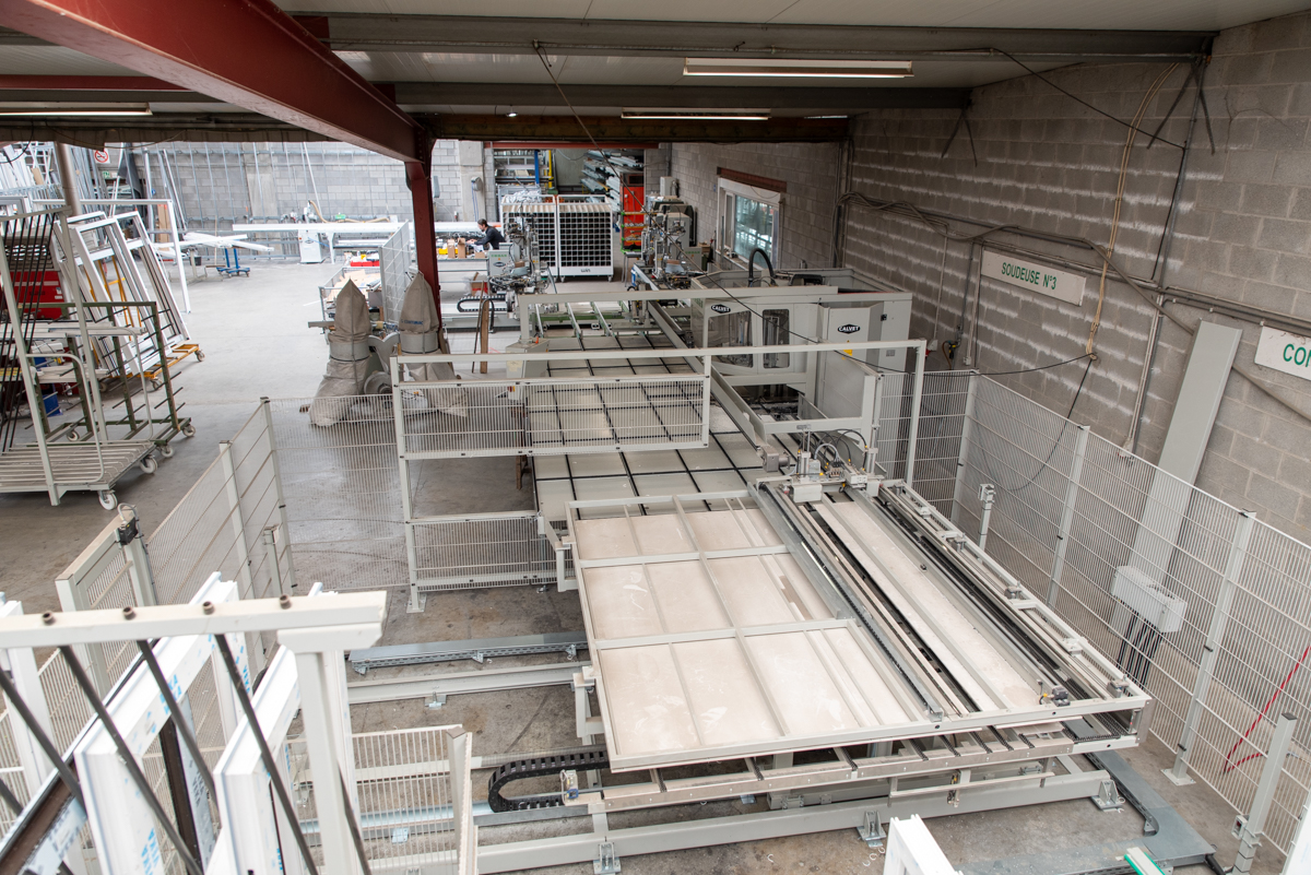 Nos machines peuvent produire jusqu’à 300 châssis PVC, et 50 châssis ALU par semaine, tout cela en respectant au maximum l’environnement, grâce à notre large installation de panneaux photovoltaïques.